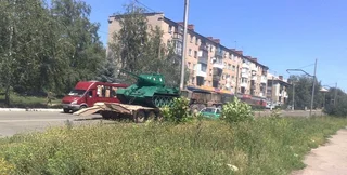 Примечательно, что танк не на ходу и боевая часть (пушка) нерабочая
