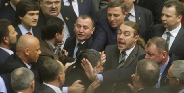 В Верховной Раде произошла потасовка между народными депутатами фракции Партии регионов и фракции "Свобода".