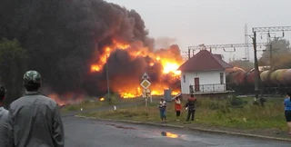 В результате аварии загорелось 11 цистерн