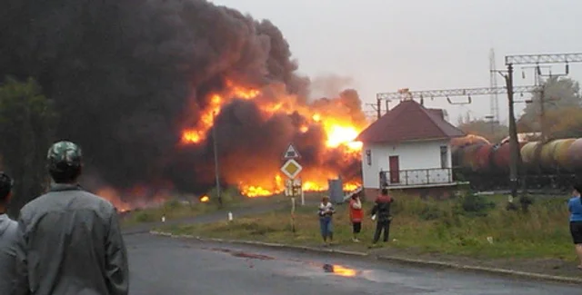 В Черкасской области в 06:35 на железнодорожной станции "Городище" сошло с рельсов 20 цистерн с нефтепродуктами.