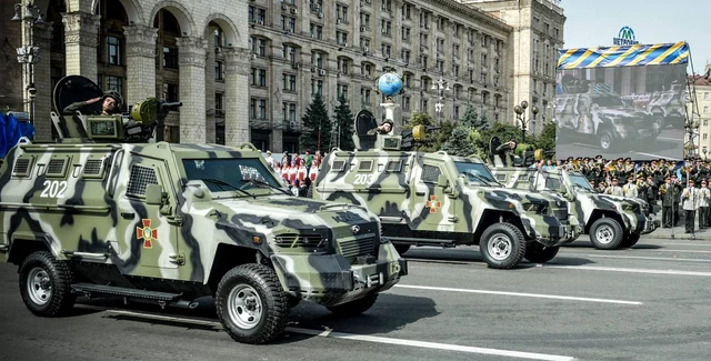 В течение суток в зону АТО отправлена часть бронированной техники, принимавшей участие в военном параде в День Независимости Украины- бронированные автомобили "Кугуар", которые предназначены для ведения боя в городе и модернизированные на базе научно-производственного объединения "Практика" бронированные автомобили "КрАЗ" для перевозки личного состава.