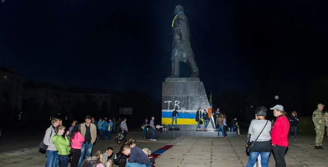 Патриоты раскрасили памятник Ленину в Краматорске (фото, видео)