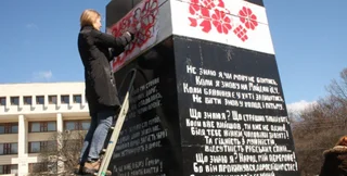 Пьедестал памятника Ленину в Полтаве переделали в памятник Небесной сотне / Фото: Kolo.Poltava.ua