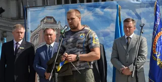 Вадим Троян на митинге в Мариуполе 20 сентября / Фото: 0629.com.ua