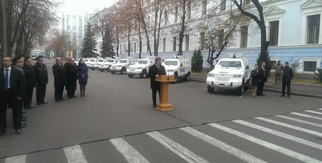 Петр Порошенко на церемонии передачи бронавтомобилей миссии ОБСЕ / Фото: facebook пресс-секретаря президента