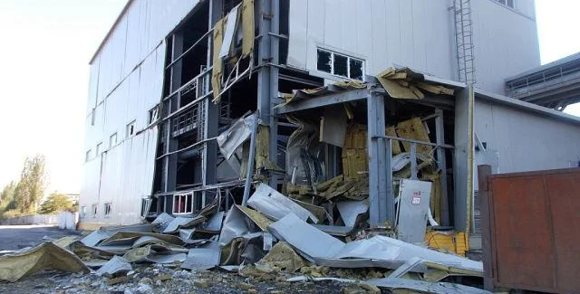 В 11.10 из-за попадания снарядов по территории промышленной площадки шахты в здании вакуумной насосной станции, которая откачивает метан, начался пожар.