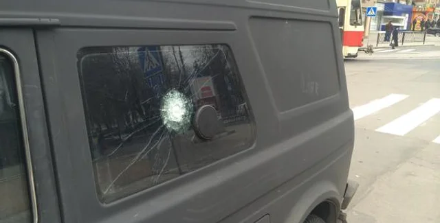 "Лидер донецких боевиков Гиви сказал своим людям выстрелить в бронированный автомобиль LifeNews ради "шутки". Вот результат", - написал Леонард, обнародовав фото.