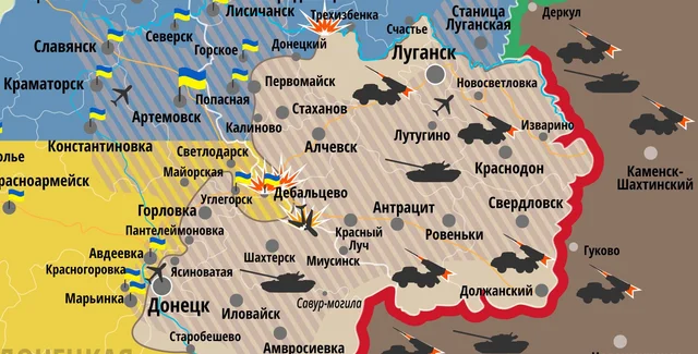 Пресс-центр СНБО предоставил карту ситуации на востоке Украины по состоянию на 12.00 вторника, 16 декабря