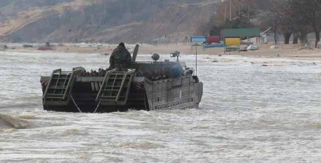 Украинские воины выходили в море на плавающих транспортерах в сложных погодных условиях: при сильном ветре и шторме в 2-4 балла.