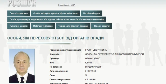 Экс-нардеп обвиняется по ч.5 ст.191 Уголовного кодекса Украины и мера пресечения в его отношении не применялась. Датой исчезновения Иванющенко указано 15 декабря 2014 года.
