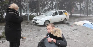 Затем СММ посетила район, недалеко от автобусной остановки по улице Матросова, также расположенной в Куйбышевском районе и приблизительно в 300 мх от другого места обстрела. Здесь наблюдатели увидели двоих погибших мужчин, одетых в гражданскую одежду.