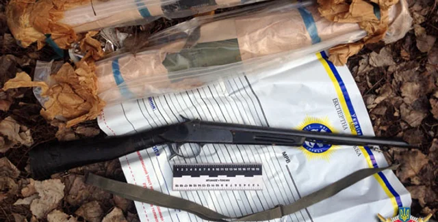 В тайнике находились два ручных противотанковых гранатомета, обрез охотничьего ружья, штык-нож, патроны, 2 детонатора с кусками проволоки, бронежилет, символика бандформирований, топографические карты, агитационные материалы.
