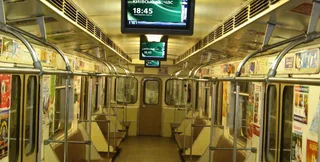 Мониторы в вагонах были установлены весной 2006 года. Они не только информировали об остановках на станциях и пересадочных узлах, но и транслировали рекламу. В конце 2013 года оборудование отключили. На сегодняшний день в вагонах метро размещено 2927 мониторов.