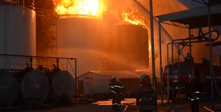 Состоянием на 7:00 вторника уже 8 резервуаров с топливом емкостью 900 куб. м и несколько небольших емкостей были охвачены огнем.