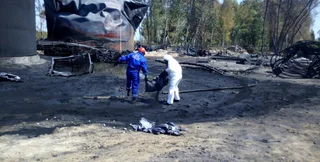 Последствия пожара на нефтебазе / Фото пресс-службы БРСМ
