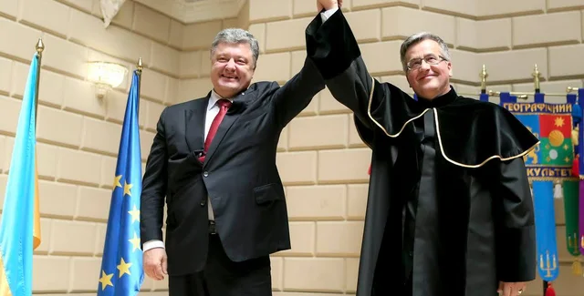 Президент Петр Порошенко во время рабочей поездки во Львовскую область принял участие в церемонии вручения звания почетного доктора Honoris causa Львовского национального университета имени Ивана Франко президенту Польши Брониславу Коморовскому, также посетившему Львов, сообщает пресс-служба.