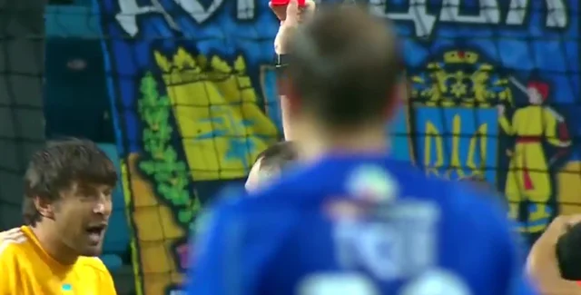 Вместо удаленного вратаря Александра Шовковского оба гола пропустил защитник Александр Драгович