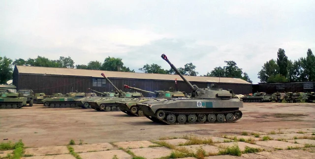 На базе скоплено более 50 единиц САУ, а также установки РСЗО "Град"