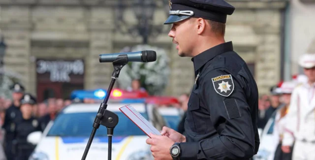 Текст присяги зачитал начальник патрульной полиции города Львова Юрий Зозуля. Среди присягнувших – Ирина Кульчицкая – невестка погибшего Героя Украины генерал-майора Национальной гвардии Сергея Кульчицкого.