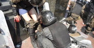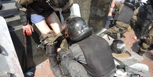 Из толпы активистов в бойцов НГУ бросили боевую гранату, вследствие чего около ста человек получили ранения.