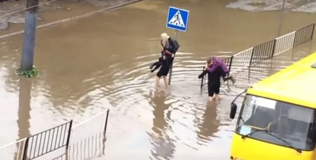 В воскресенье из-за сильного дождя улицы Львова превратились в реки