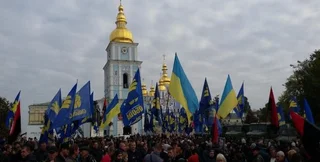 Украинские правые политические силы в центре Киева проводят акцию "Марш героев", сообщает "Радио Свобода".