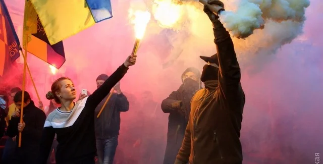 В Харькове и Одессе 14 октября прошли "Марши героев", организованные гражданским корпусом полка "Азов", сообщает "Украинская правда".