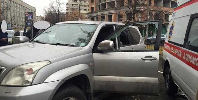 Разбойное нападение произошло возле отделения банка на улице Ванды Василевской около 11 утра. Неизвестные заблокировали автомобиль пострадавшего, разбили стекло и открыли огонь из травматического пистолета, а затем забрали сумку, в которой находились 300 тыс. гривен, и скрылись с места преступления.