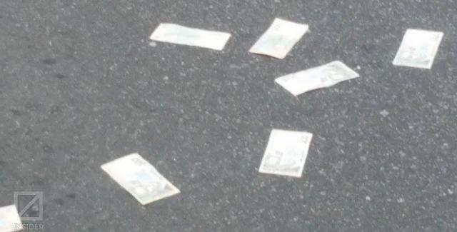 За время, когда свидетели разговаривали с полицейскими, ветер начал сдувать разбросанные банкноты и прохожие рядом собрали их, после чего разошлись. Полицейские продолжали допрос.