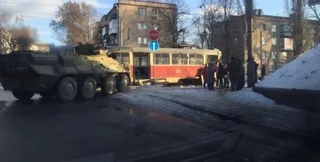 В Днепропетровске БТР протаранил трамвай