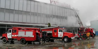 Спасатели тушат огонь в складских помещениях и торговых местах на первом этаже магазина "Украина"