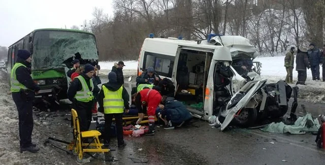 В результате столкновения пассажирского автобуса и автомобиля скорой медицинской помощи на проспекте Тракторостроителей в Харькове погибли 2 человека, сообщает "РБК-Украина".