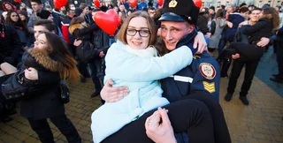Рекорд по количеству женщин, одновременно поднятых мужчинами на руки, установлен на площади возле Памятника Влюбленным в центре Харькова.