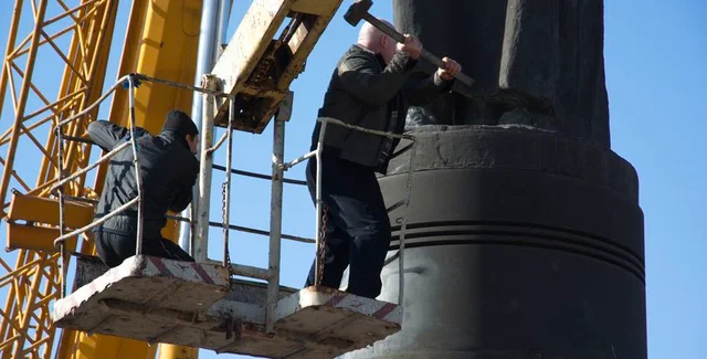 В центре Днепродзержинска Днепропетровской области 17 февраля демонтировали памятник "железному Феликсу" - советскому деятелю Феликсу Дзержинскому, сообщает УНИАН.