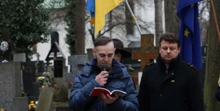 Общественные активисты, посол Украины в Чехии и неравнодушные украинцы, среди которых были и непосредственные участники событий Революции Достоинства, собрались на Ольшанском кладбище возле символической могилы, на которой год назад установили доску памяти героям Небесной Сотни.