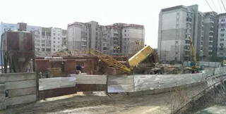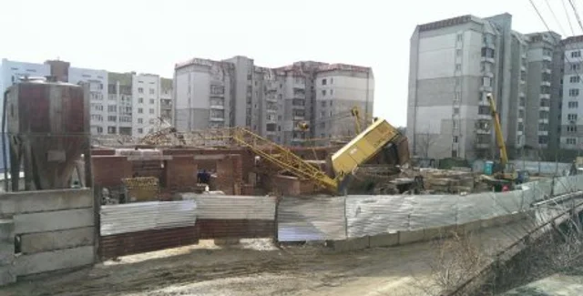 Кран находился на стройке нового девятиэтажного кирпичного дома.