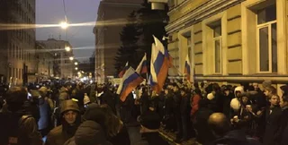 Кроме этого можно было услышать лозунги в поддержку агрессивной политики президента РФ Владимира Путина.