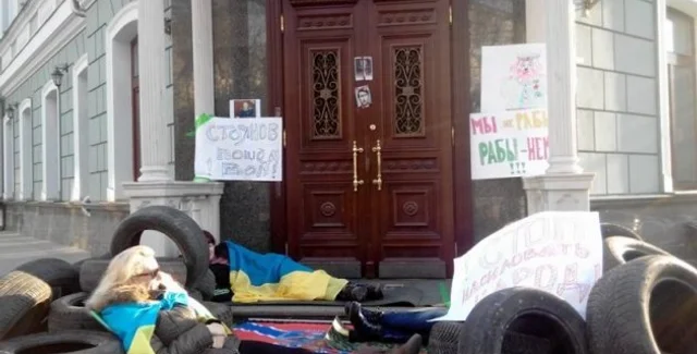 Активисты пикетируют также областную прокуратуру, требуя отставки Николая Стоянова, восстановленного на должности