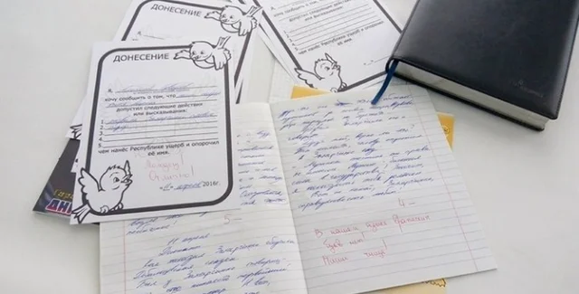 В Интернете появились фотографии бланков, с помощью которых школьников оккупированного Донбасса учат писать доносы на уроках "гражданской ответственности".