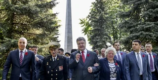 Вместе с президентом в торжественном памятном шествии приняли участие ветераны Второй мировой войны и ветераны АТО, премьер-министр Украины, председатель Верховной Рады Украины, киевской городской голова, члены правительства, народные депутаты Украины, представители всех религиозных конфессий Украины.