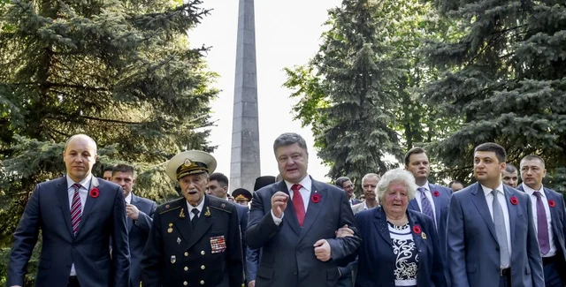 По завершении памятных мероприятий президент Порошенко пообщался с людьми, которые пришли почтить память погибших героев и отдать дань уважения ветеранам Второй мировой войны и ветеранам АТО.