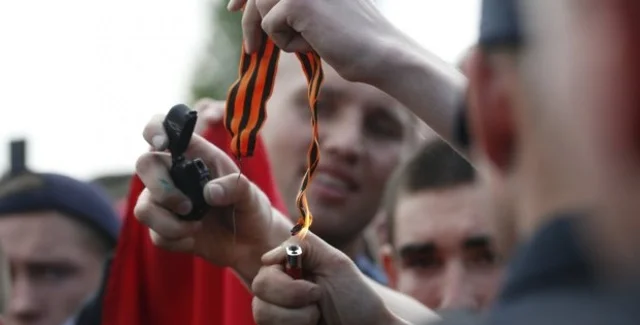 Как сообщает телеканал "112 Украина", на пути к Могиле Неизвестного Солдата во время акции "Бессмертный полк" состоялась потасовка из-за георгиевской ленты.