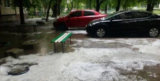 "На жилом массиве Тополь-2 дворы и улицы выглядят по-зимнему. Люди стараются не выходить из дома. От такого большого града наверняка могут пострадать машины. Также от стихии страдают растения", - сообщил сайт.
