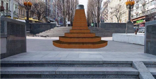 Синтия Гутьерес предложила построить вокруг постамента лестницы, чтобы каждый человек почувствовал движение исторических символов - от подъема к упадку и забвению. "Цель моей работы – поставить под вопрос устоявшиеся схемы, окружающие нас", - объясняет художница.