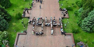 Сегодня студенты вышли под стены института международных отношений КНУ имени Тараса Шевченко и образовали название песни Джамалы – "1944". В акции приняли участие около 150 студентов.