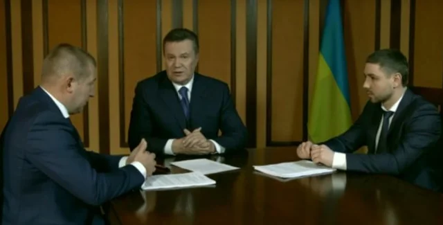 На видеозаписи видно, как Янукович на фоне украинского флага рассказывает своему адвокату Владиславу Сердюку и адвокату Горошинскому свою версию событий на Майдане. Он также выразил согласие быть допрошенным украинским судом по видеосвязи и подписал соответствующие документы.