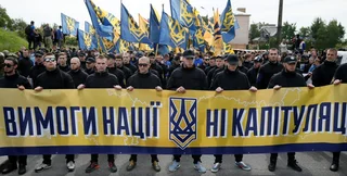 На акцию под названием "Вимоги Нації – ні капітуляції" собрались несколько тысяч человек. Их главным требованием было не проводить выборы в оккупированных районах Донбасса до тех пор, пока не будет полностью восстановлен контроль государственной границы на востоке Украины.
