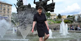 После освобождения из российских застенков народный депутат, делегат Украины в ПАСЕ, украинская летчица Надежда Савченко искупалась в фонтане на Майдане Незалежности в Киеве и пообщалась с соотечественниками.