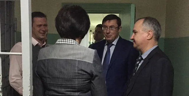 В понедельник глава СБУ Василий Грицак, генеральный прокурор Юрий Луценко и уполномоченный Верховной Рады по правам человека Валерия Лутковская провели внеплановую проверку следственного изолятора СБУ в Киеве.