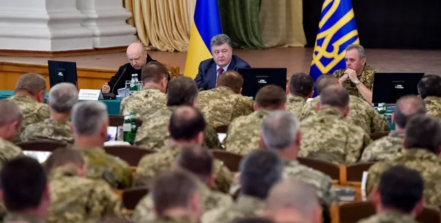 Президент Украины Петр Порошенко принял участие в работе научно-практической конференции "Уроки гибридной войны: военные аспекты", которая проходит в генеральном штабе министерства обороны Украины. Об этом сообщает пресс-служба главы государства.